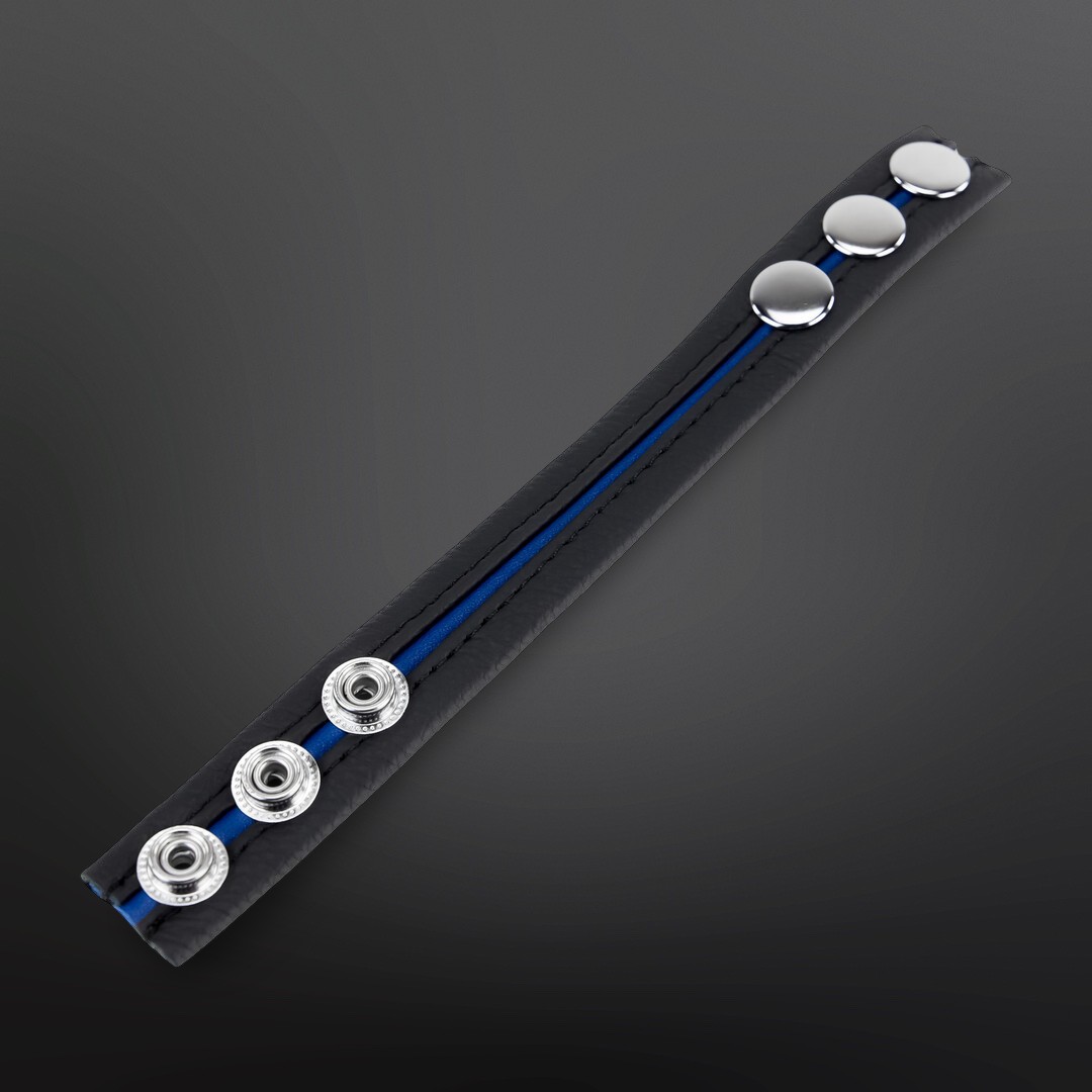 Verstellbarer Leder-Cockring The Red Blau, männlicher Penisring mit intensiv blauem Look, entwickelt für präzises Anziehen und festen Halt. Durch Druckknöpfe verstellbar, passt er sich deiner Anatomie an und sorgt für einen bequemen, maskulinen Sitz – perfekt, um dein BDSM- oder Leder-Fetisch-Equipment zu ergänzen.