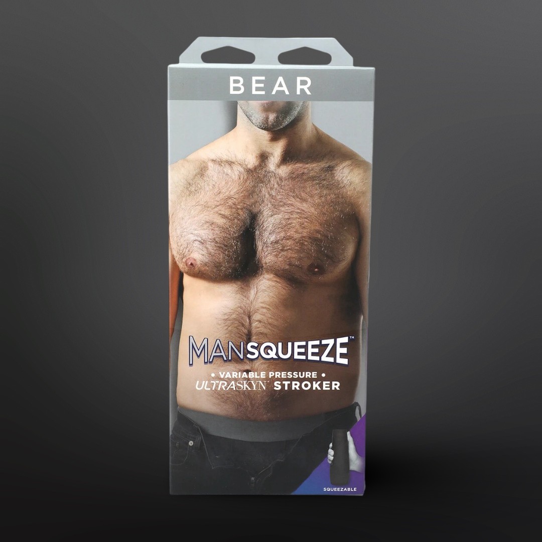 The ULTRASKYN Bear Ass Masturbator places a full molded bear ass in your hand, mounted on a solid black shell designed to handle deep, heavy thrusts. The anal opening is explicit, deep and immediately inviting, with a tight inner canal that grips your shaft from the first push. The realistic ULTRASKYN sleeve warms to the body and wraps firmly around the cock as soon as you increase the pace. The rigid shell lets you hold the toy without deforming it, push hard, brace it against your pelvis or work it with both hands without losing intensity.