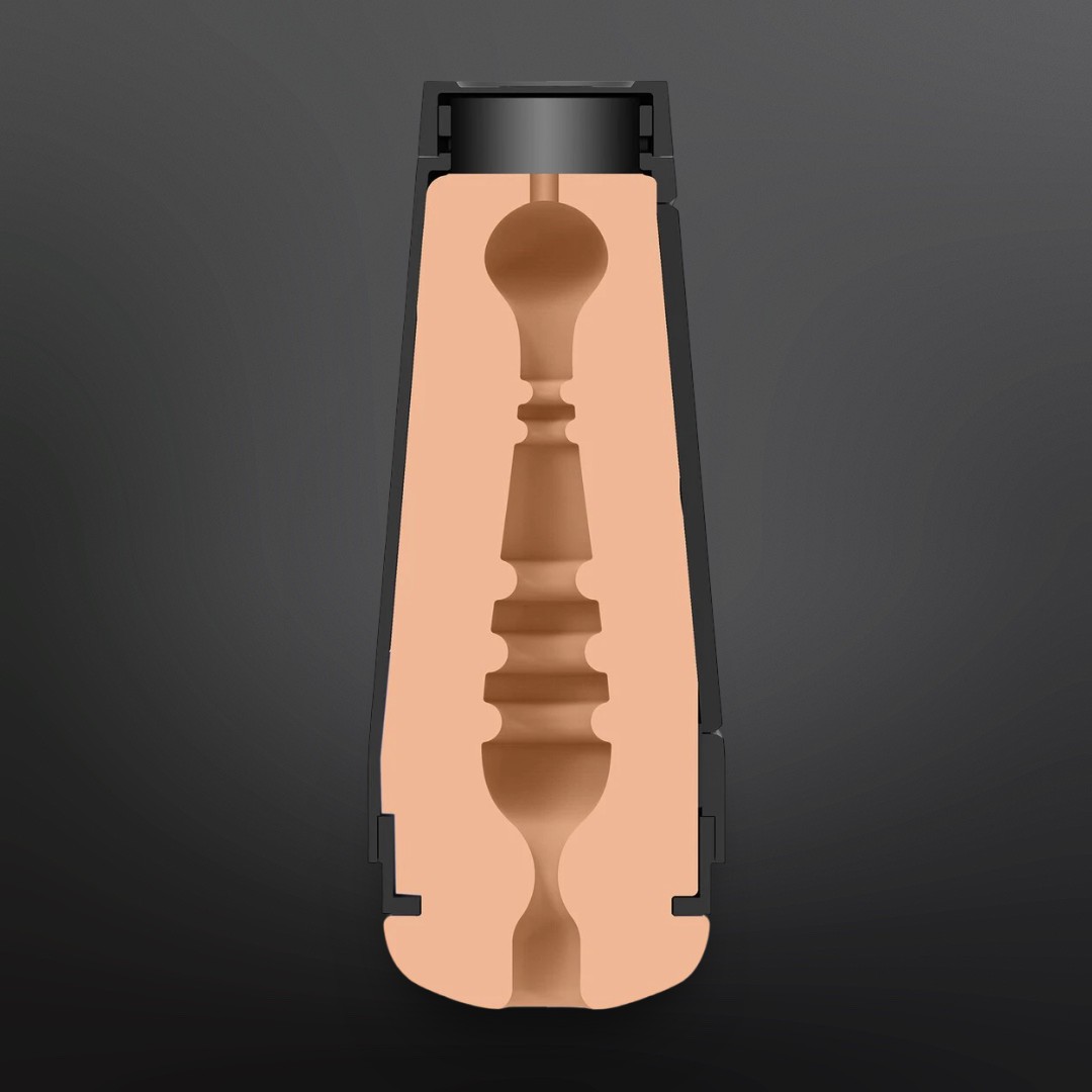 Created by Doc Johnson, this model pairs a rigid ABS shell with a removable ULTRASKYN sleeve in phthalate-free TPE. The interior is lined with ridges and textured zones that provide full-coverage stimulation from the tip to the base. The double screw cap keeps the toy discreet: molded ass protected at the front, suction module hidden at the back. The sleeve removes completely for cleaning with warm water and toy cleaner, then dries fully before reassembly for your next session.