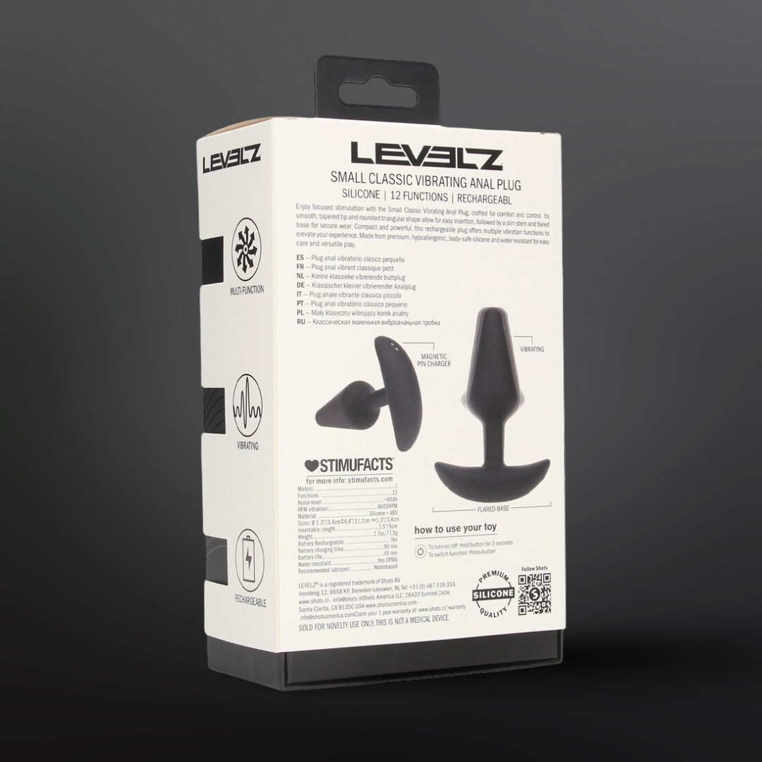 The Levelz S Rechargeable Vibrating Silicone Anal Plug is a compact vibrating anal plug made of premium silicone, ideal for beginners or focused anal play. Size S, 12 vibration modes, a rechargeable battery and a water-resistant body for controlled and safe stimulation.