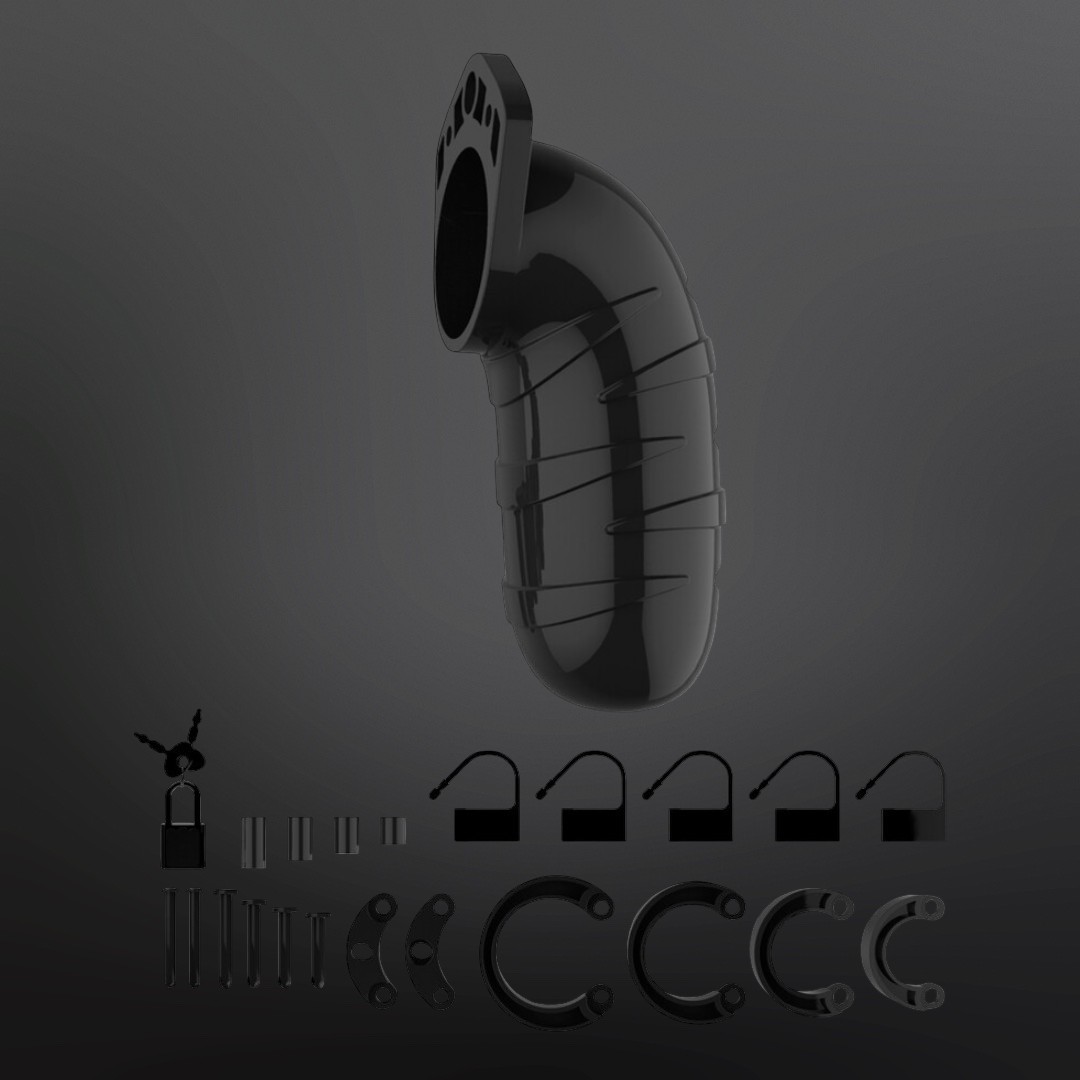 La cage de chasteté est fabriquée en polycarbonate de qualité, léger, robuste et sans phtalates, conçu pour résister aux usages répétés. Le dispositif se compose de trois parties qui s’emboîtent précisément : la chambre de 14 cm, les goupilles de guidage et la tige conique qui relie l’anneau de base à la cage. Plusieurs anneaux fournis permettent d’ajuster le serrage autour de la base du sexe et des couilles, pour adapter la contrainte à la morphologie et au niveau de jeu recherché. Des ouvertures de ventilation et une ouverture dédiée à la miction facilitent l’hygiène quotidienne et évitent de devoir retirer la cage pour le passage aux toilettes. Entièrement étanche, la Man Cage Model 05 se porte aussi sous la douche, ce qui simplifie le nettoyage et le port continu.