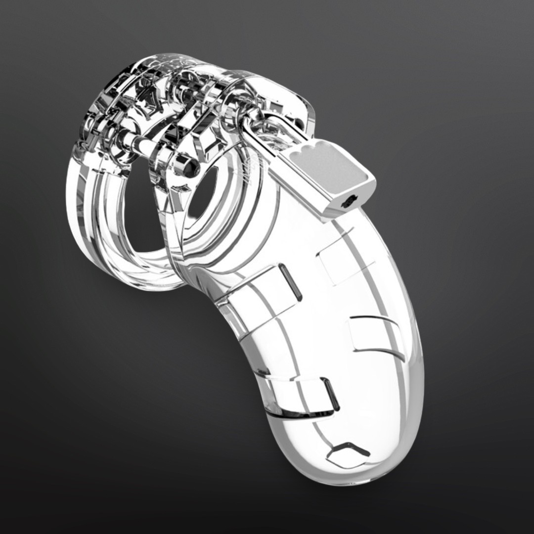 La Cage de Chasteté Man Cage Model 01 enferme la queue dans une cage courte en polycarbonate rigide de 9 cm (3.5″). Anneaux ajustables, verrou sécurisé, hygiène facile et deux versions disponibles : noire ou transparente.