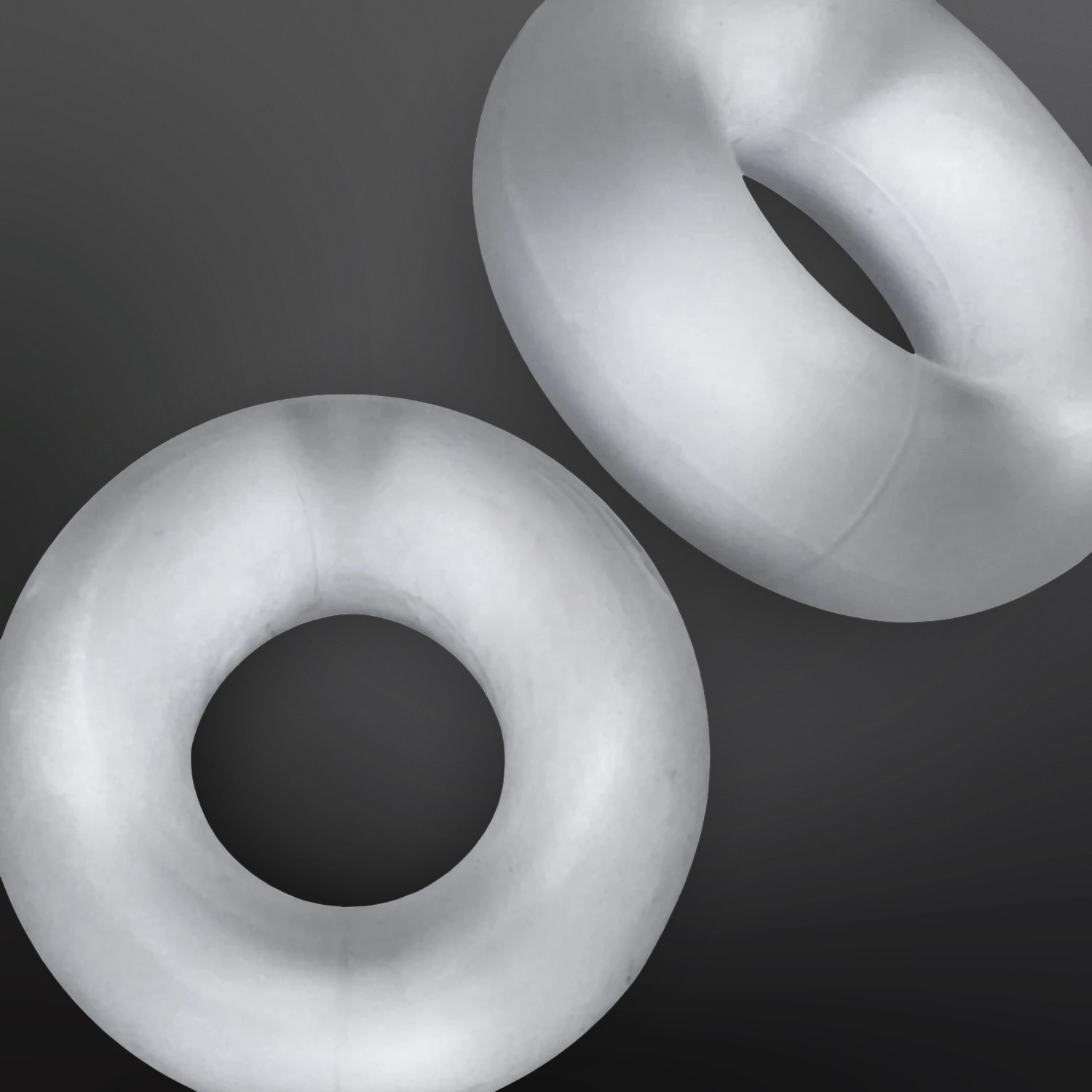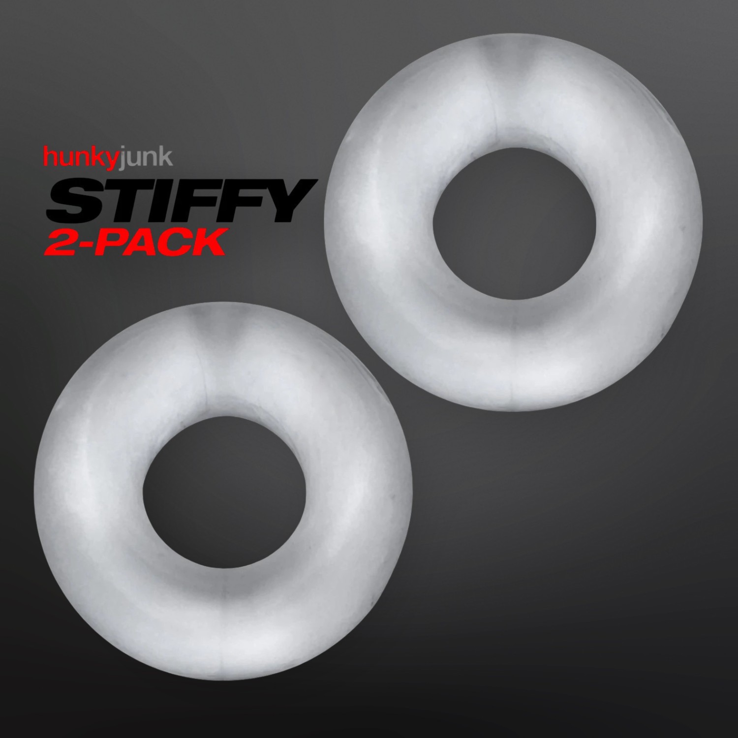 STIFFY Clear Ice par Oxballs : pack de 2 cockrings transparents en PLUS+SILICONE super-stretch, profil no-roll et toucher mat. Maintien ferme sans pincement, paquet bien mis en avant, port à la base, autour des couilles ou en combo.