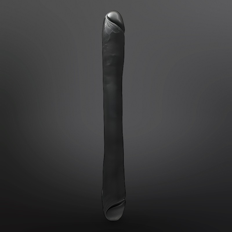Double gode Exxxtreme : deux glands massifs à chaque extrémité reliés par un fût rectiligne. 58 cm de longueur totale, Ø 6,0 cm — noir profond, surface lisse en PVC sans phtalates. Un format pensé pour du jeu appuyé, en solo comme à deux, avec une prise solide pour guider le mouvement.